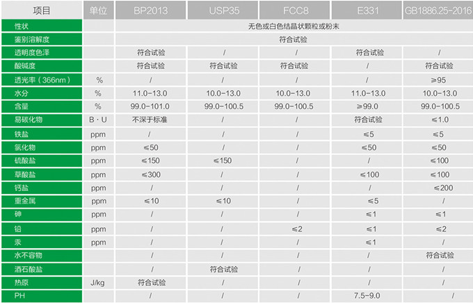 執行標準:BP2013/USP35/FCC8/E331/GB1886.25-2016